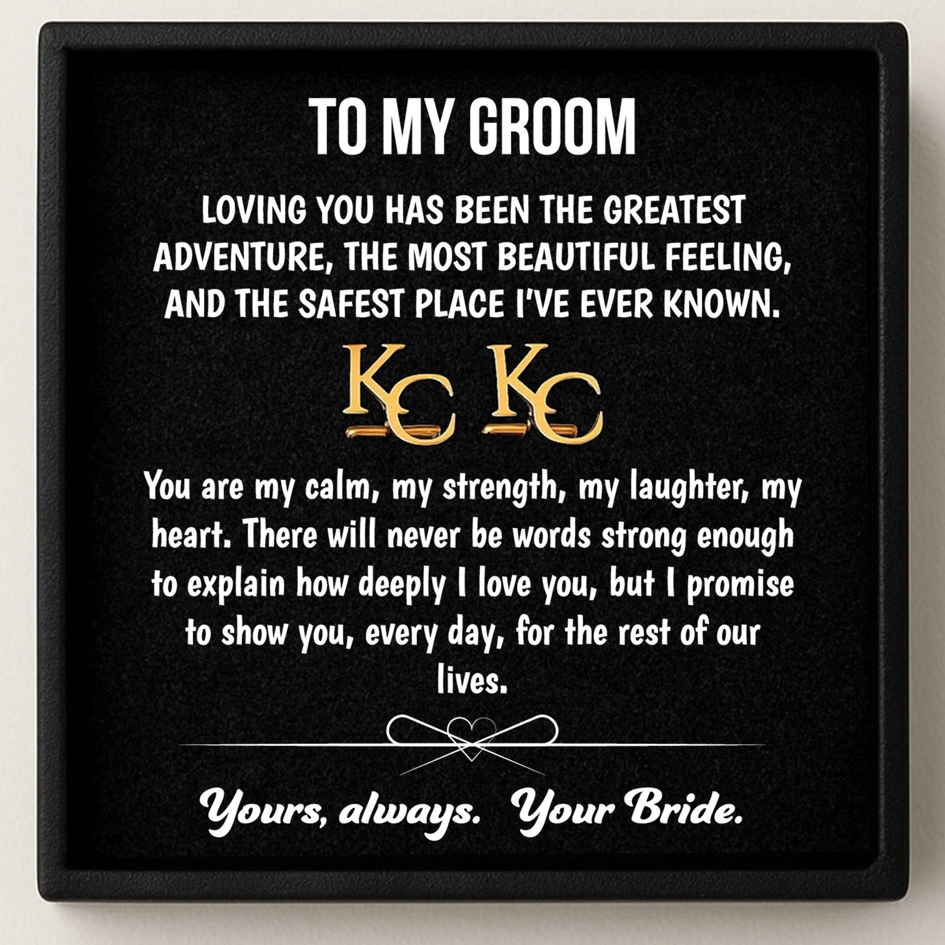 Whether it’s for your groom, your dad, or yourself, these cufflinks are a timeless keepsake that turns a special moment into something unforgettable. Delivered in a gift-ready box, they’re ready to impress.