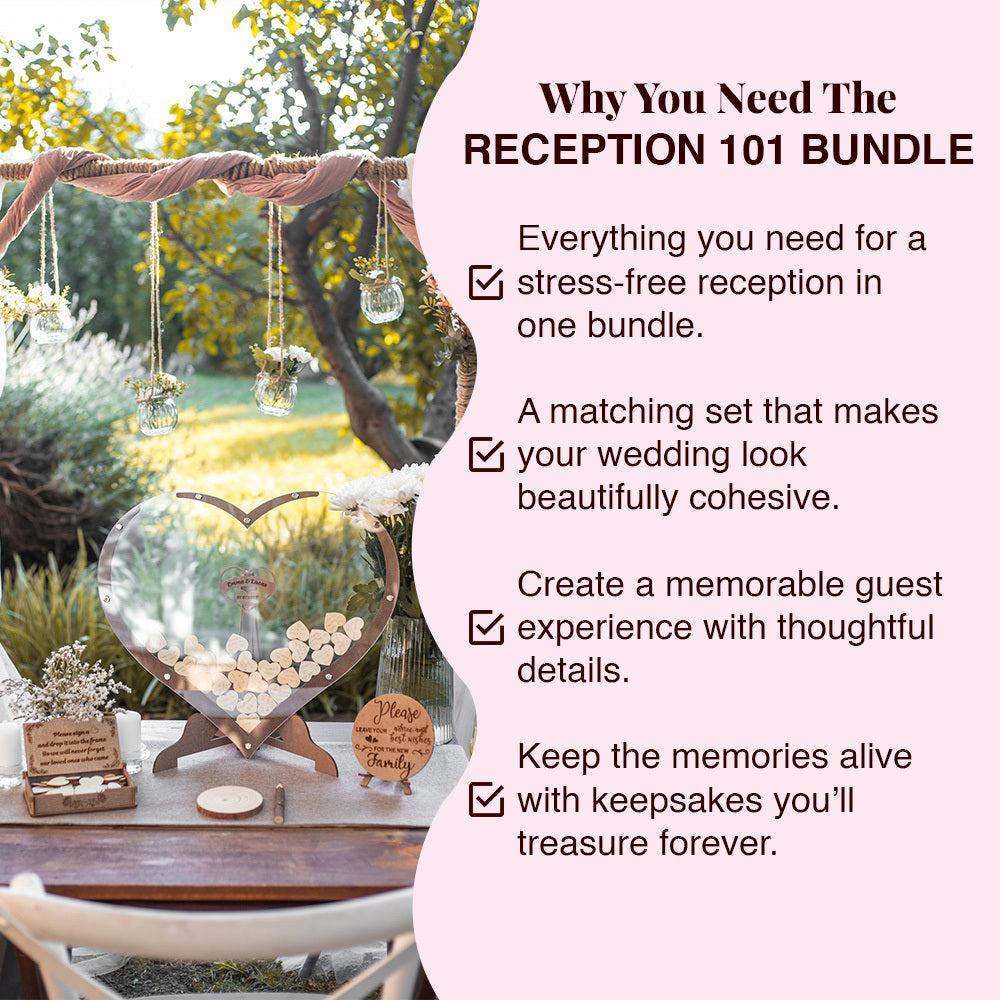 With rustic charm, thoughtful design, and handcrafted details, this bundle transforms your big day into something unforgettable. Offered for a limited time only, it’s the perfect way to bring your vision to life—beautifully, effortlessly, and with love in every detail.